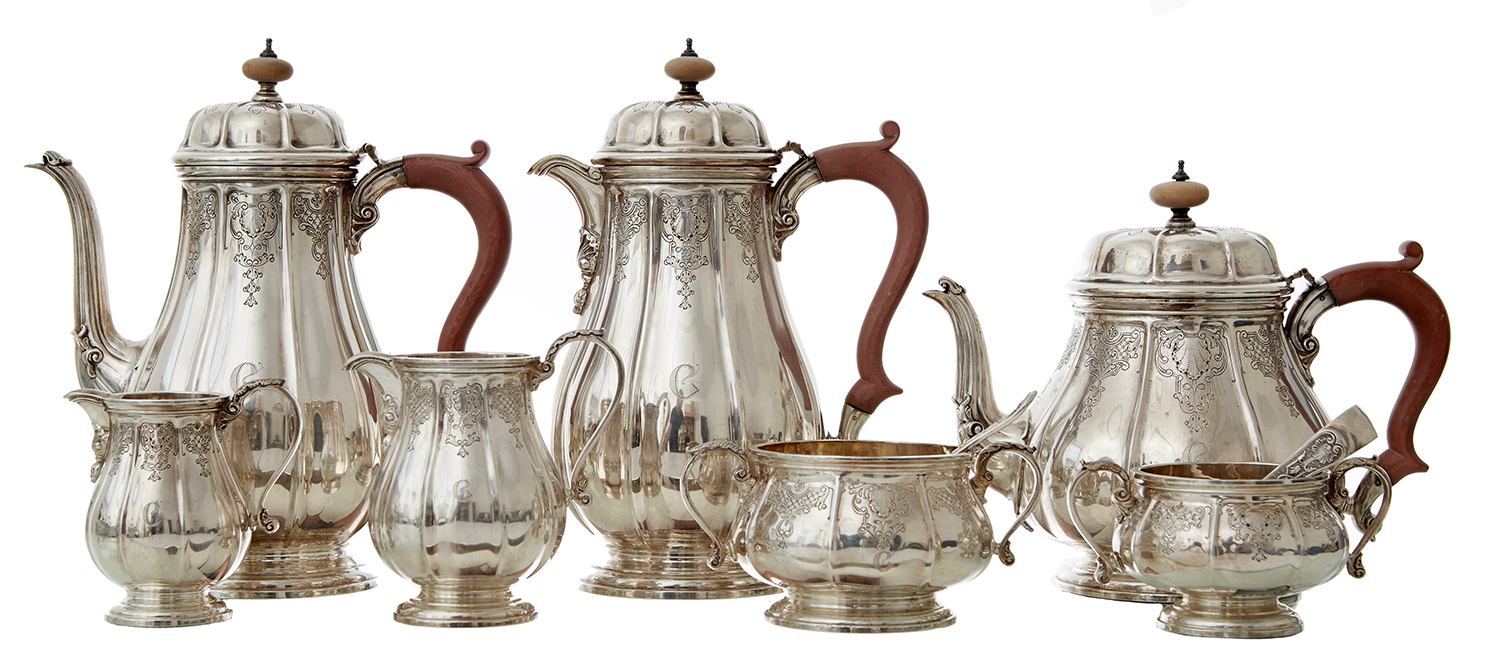 AN EXTENSIVE STERLING SILVER SEVEN PIECE TEA & COFFEE SERVICE BY HARDY BROTHERS, BIRMINGHAM 1956, 57 AND 58