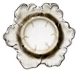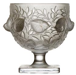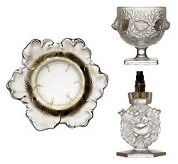 A GROUP OF LALIQUE FRANCE, COMPRING; 'ELIZABETH' PEDESTAL BOWL 'CAPUCINES' LEAF BOWL AND LALIQUE FRANCE 'MESANGES' LAMP
