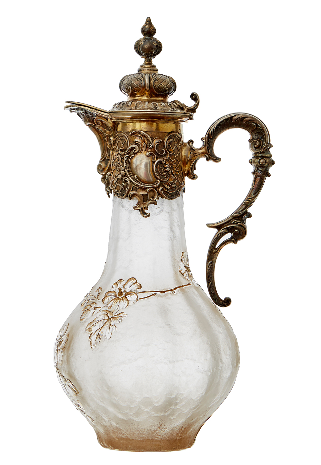 A FRENCH ART NOVEAU GILDED SILVER MOUNTED CLARET JUG, PARIS CIRCA 1890, POSSIBLY BACCARAT AND ROUSSEL EUGENE DOUTRE