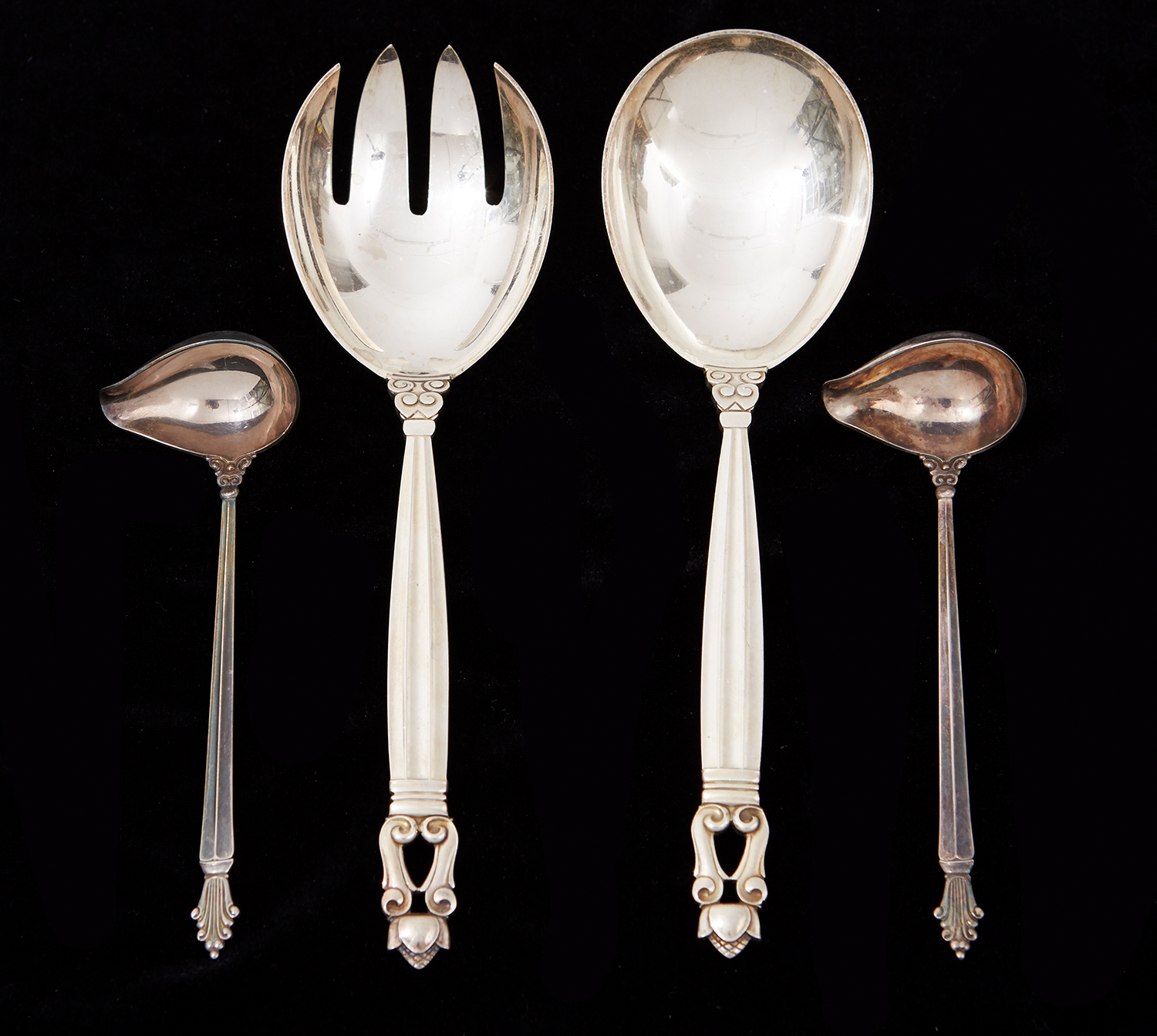 The servers marked George Jensen Sterling Denmark; the ladles marked GJ Ltd 925 Sterling Denmark, (4)