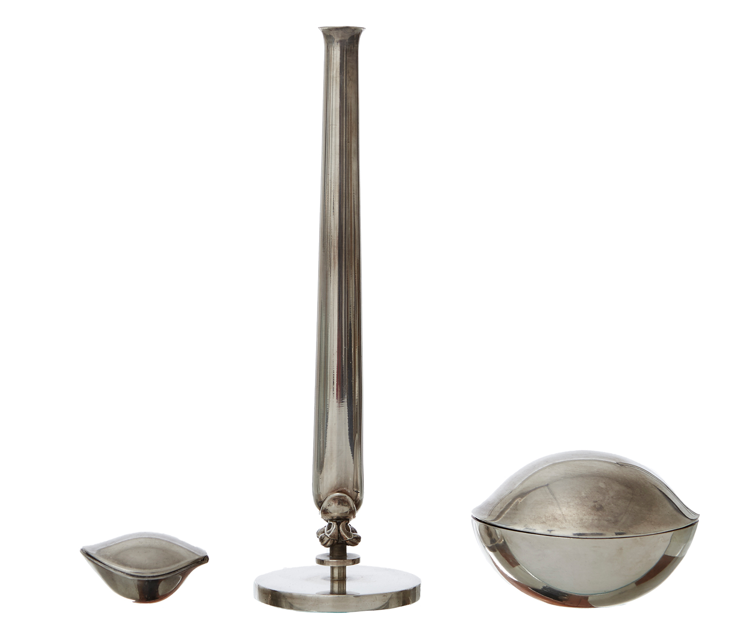 All marked sterling with numbers 757, 1121, 325, vase 22cm high, (3)