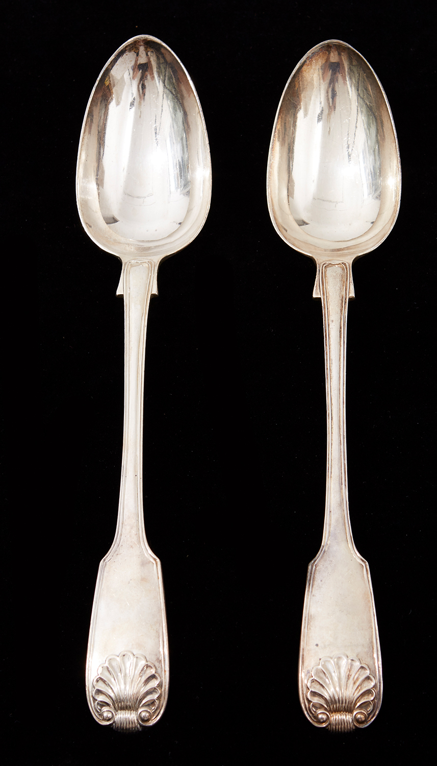 A PAIR OF VICTORIAN STERLING SILVER BASTING SPOONS BY JOHN HENRY LIAS, LONDON 1839