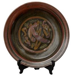 TWO LARGE AUSTRALIAN STONEWARE POTTERY CHARGER BY HAROLD HUGHAN (1893-1987)