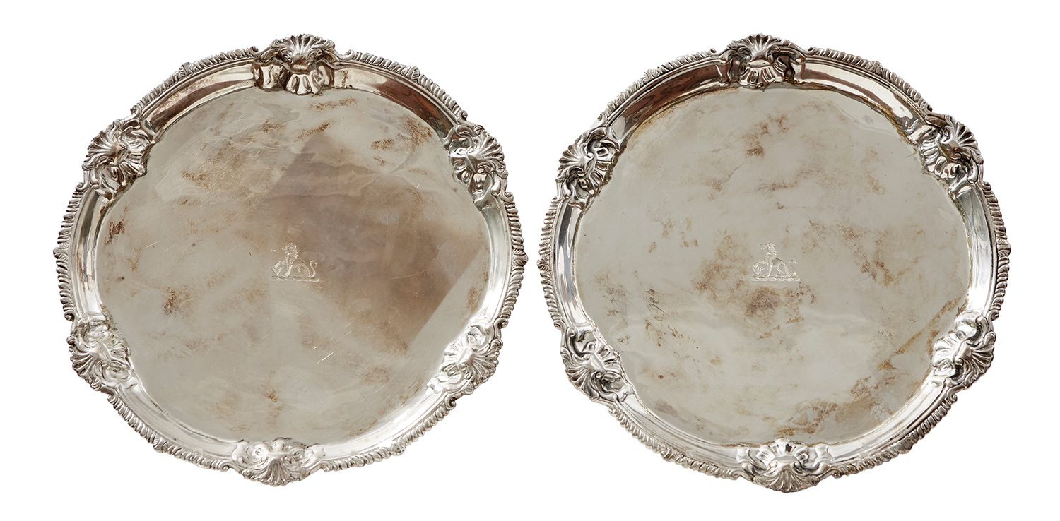 Each of circular form with gadrooned rim, with engraved panther crest, 787 grams