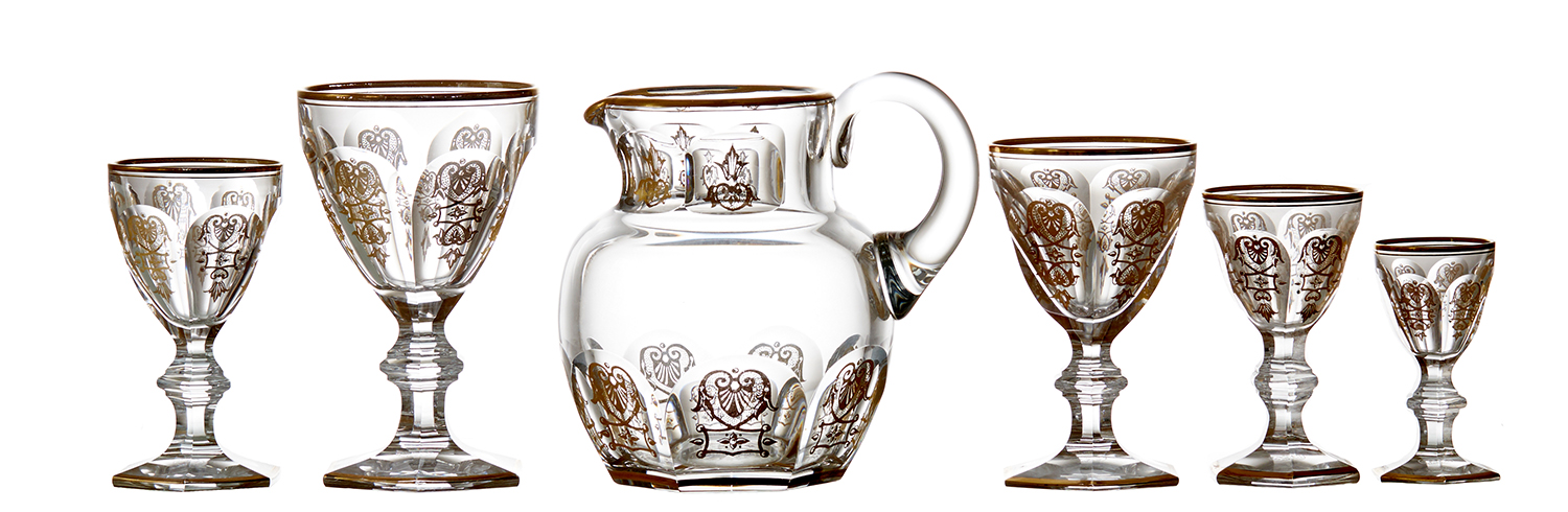 Comprising; a water jug, 9 x liqueur glasses, 9 x aperitif glasses, 6 x small wine glasses, 9 x medium wine glasses and 9 x large wine glasses (44)