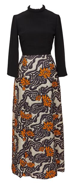 Sourced by the owner on business trips to Hong Kong during the period, this collection of eveningwear in silk and silk wool all bares signs of hand embellishment, reflecting potential commissioned-based manufacturing. Each labelled "DYNASTY; HONG KONG"