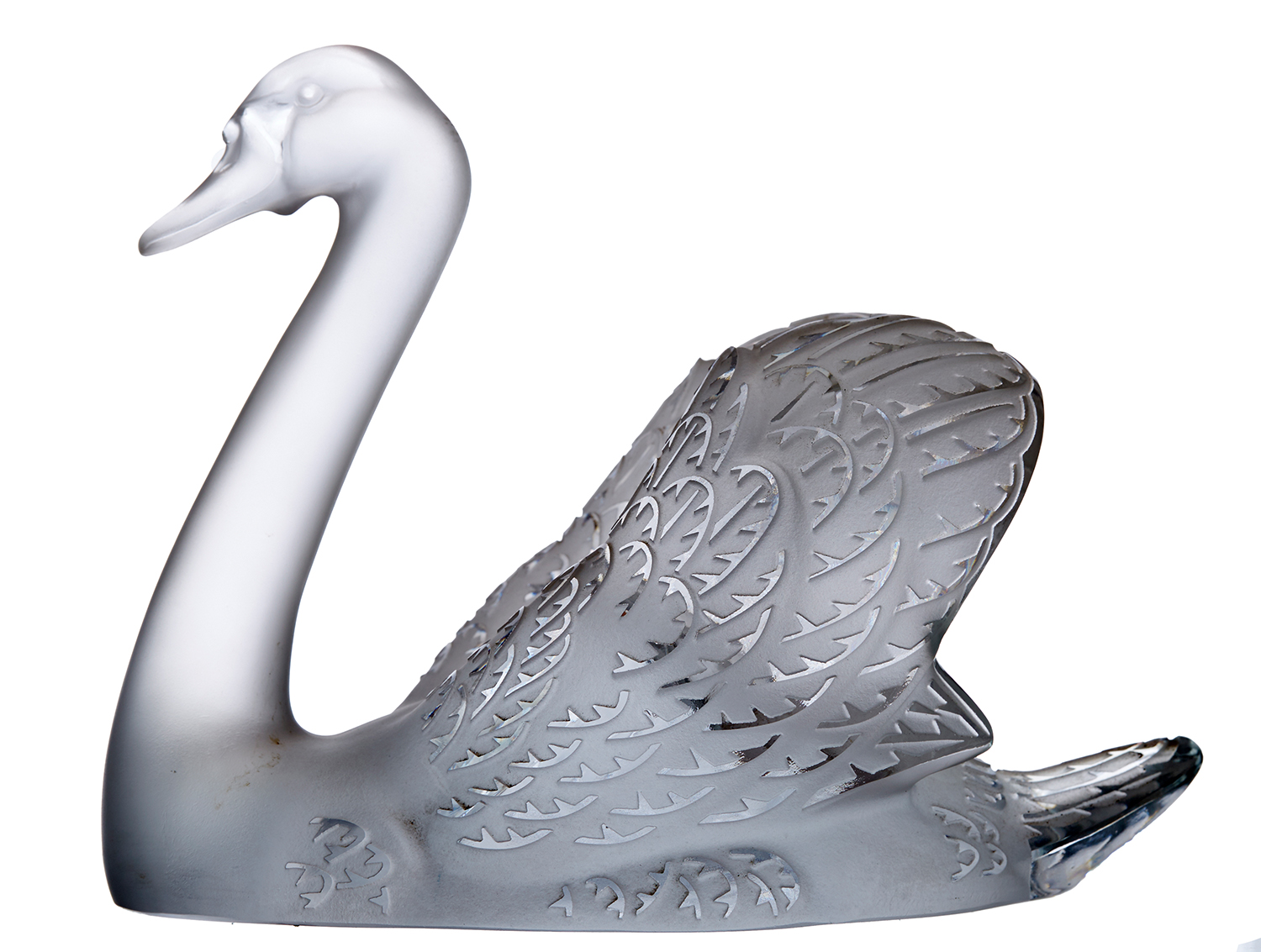 Modelled with head raised and as on water, Lalique France engraved to the tale, 32cm width