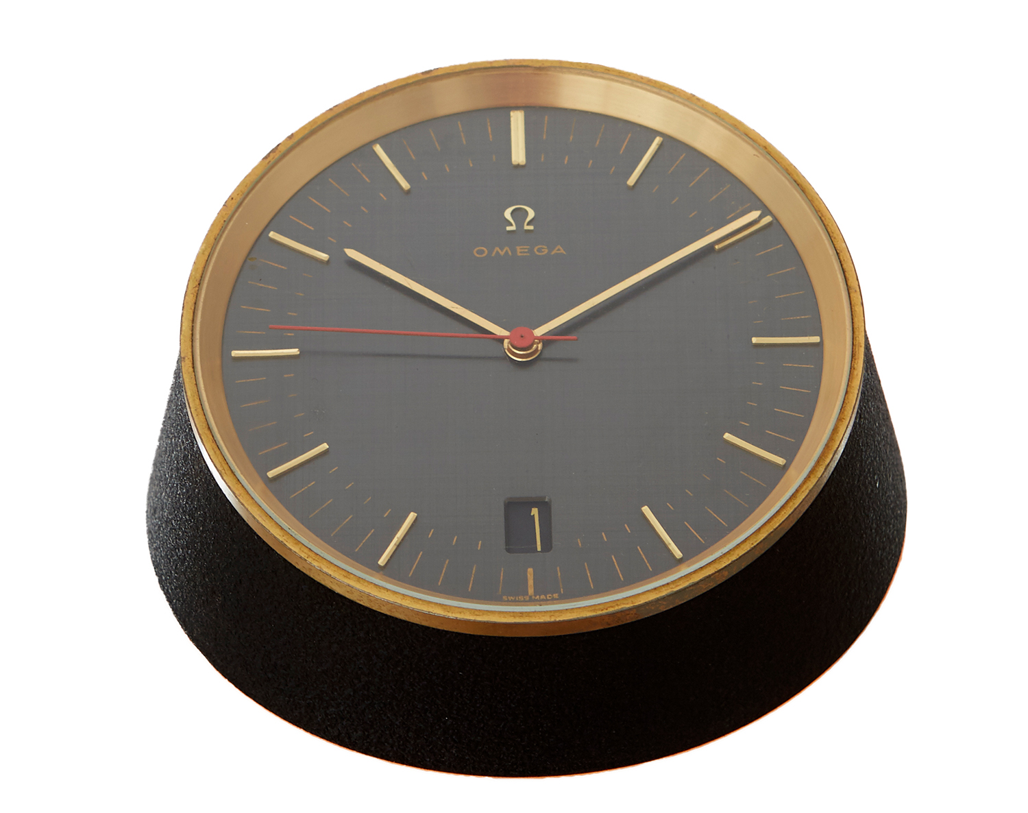 AN OMEGA CYLINDRICAL DESK CLOCK, CIRCA 1970