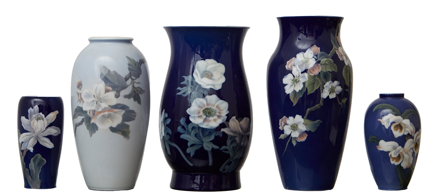 Each painted with floral design, tallest 31.5cm (5)