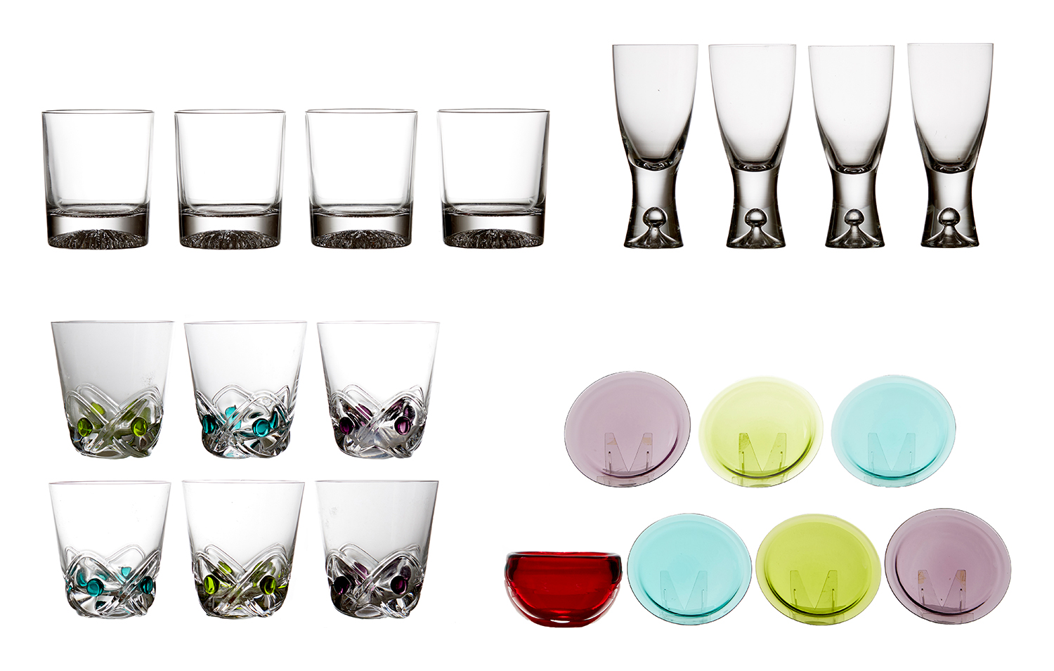 Comprising; a harlequin set of six Floride tumblers and saucers by Lalique, together with four bubble glasses by Tapio Wirkkala for Iittala, and an art glass bowl by Venini, Murano and four Daum tumblers (15)