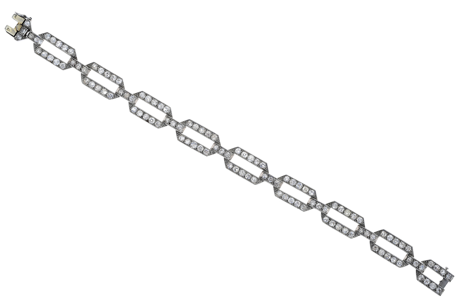 Set with mixed old European and single cut diamonds totalling 4.50cts, mounted in platinum, to an 18ct white gold clasp with French hallmarks, total length 180mm.