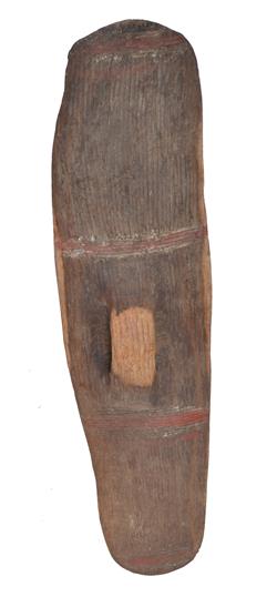 fluted and decorated with natural earth pigments on wood