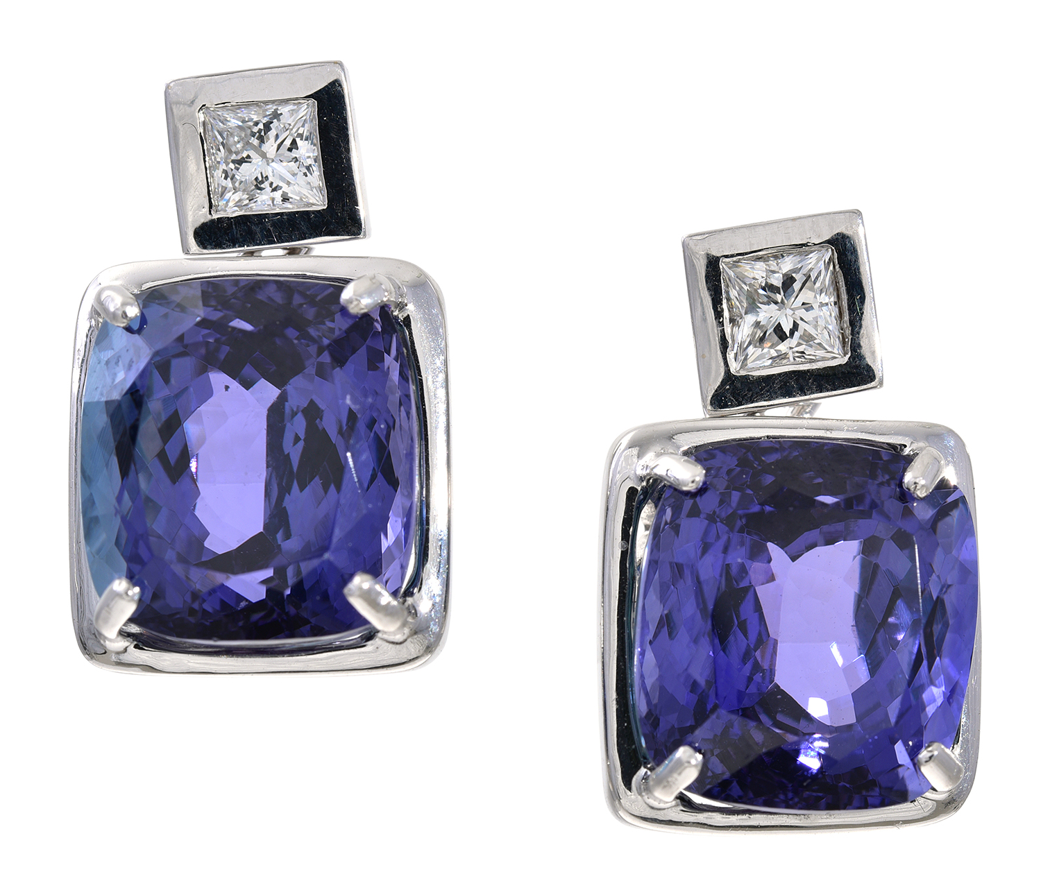 Earrings to post and butterfly fittings. In good condition with all stones secure in their settings. Diamonds approximate colour F-G and clarity VS-SI.