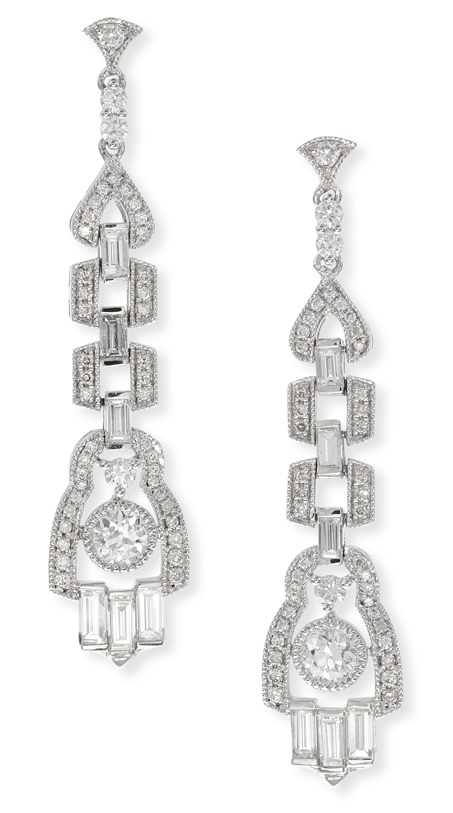 Each comprising round old style vintage, baguette and single cut diamonds totalling 1.50cts, mounted in 18ct white gold.