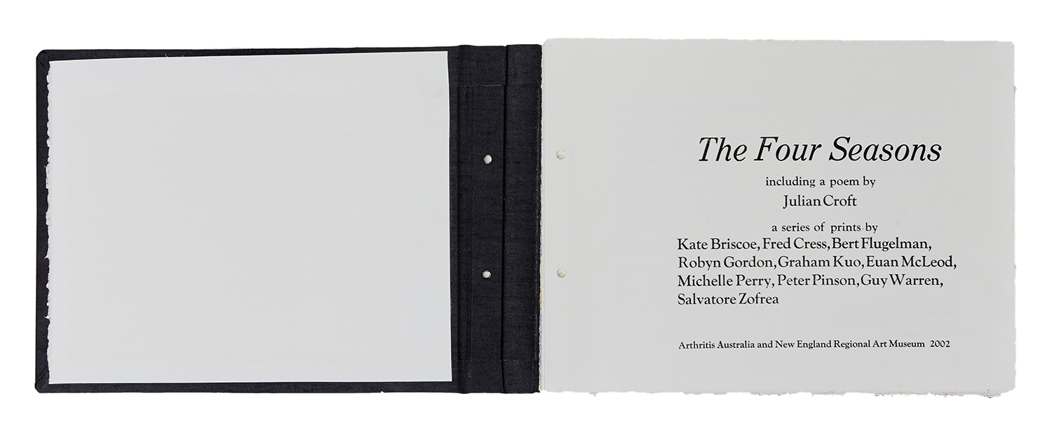 forty signed prints by ten artists including: Kate Biscoe, Fred Cress, Bert Flugelman, Robyn Gordon, Graham Kuo, Euan McLeod, Michelle Perry, Peter Pinson, Guy Warren, and Salvatore Zofrea