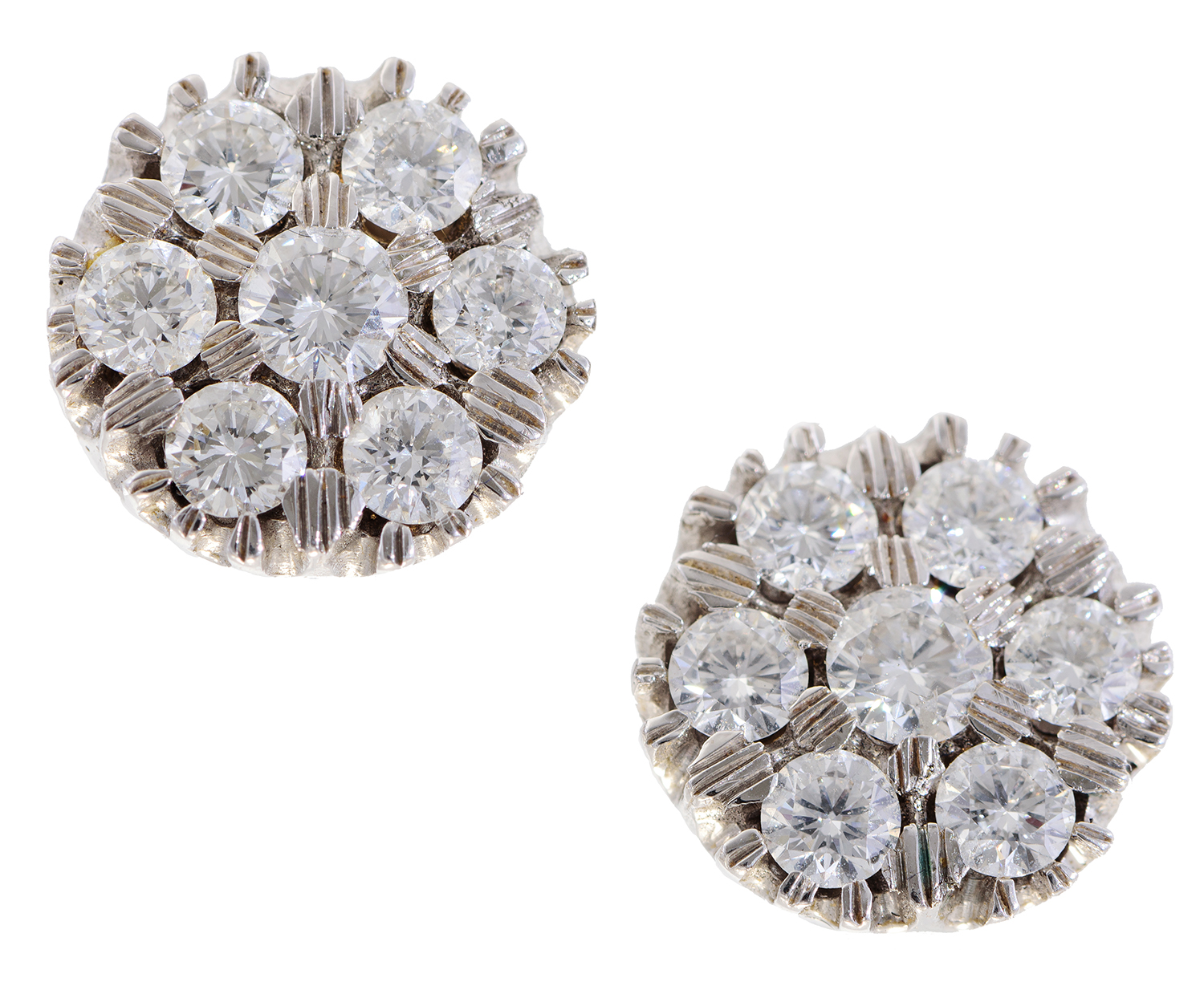 Each comprising seven round brilliant cut diamonds totalling 1.40cts, mounted in 18ct white gold.
