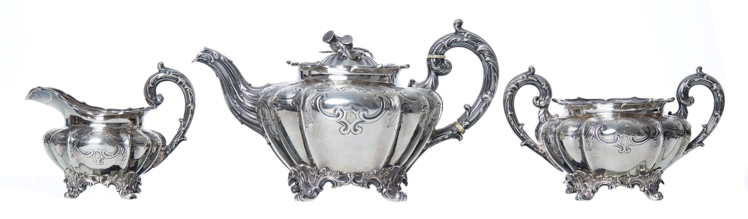 Comprising; tea pot, sugar basin and milk jug, total weight 1400 grams