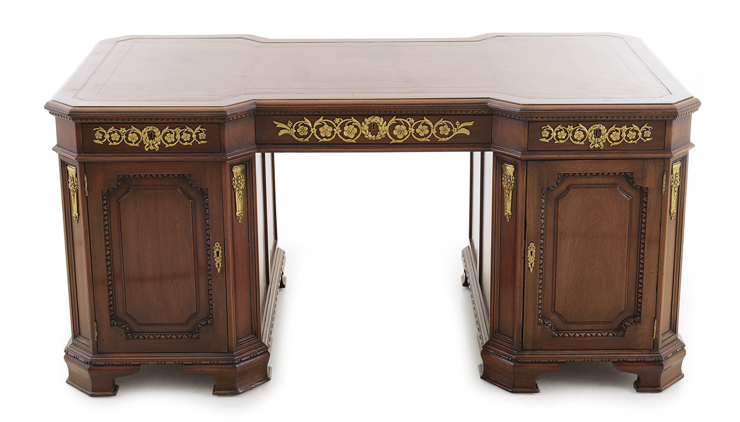 A FRENCH ORMOLU MOUNTED TWIN PEDESTAL DESK