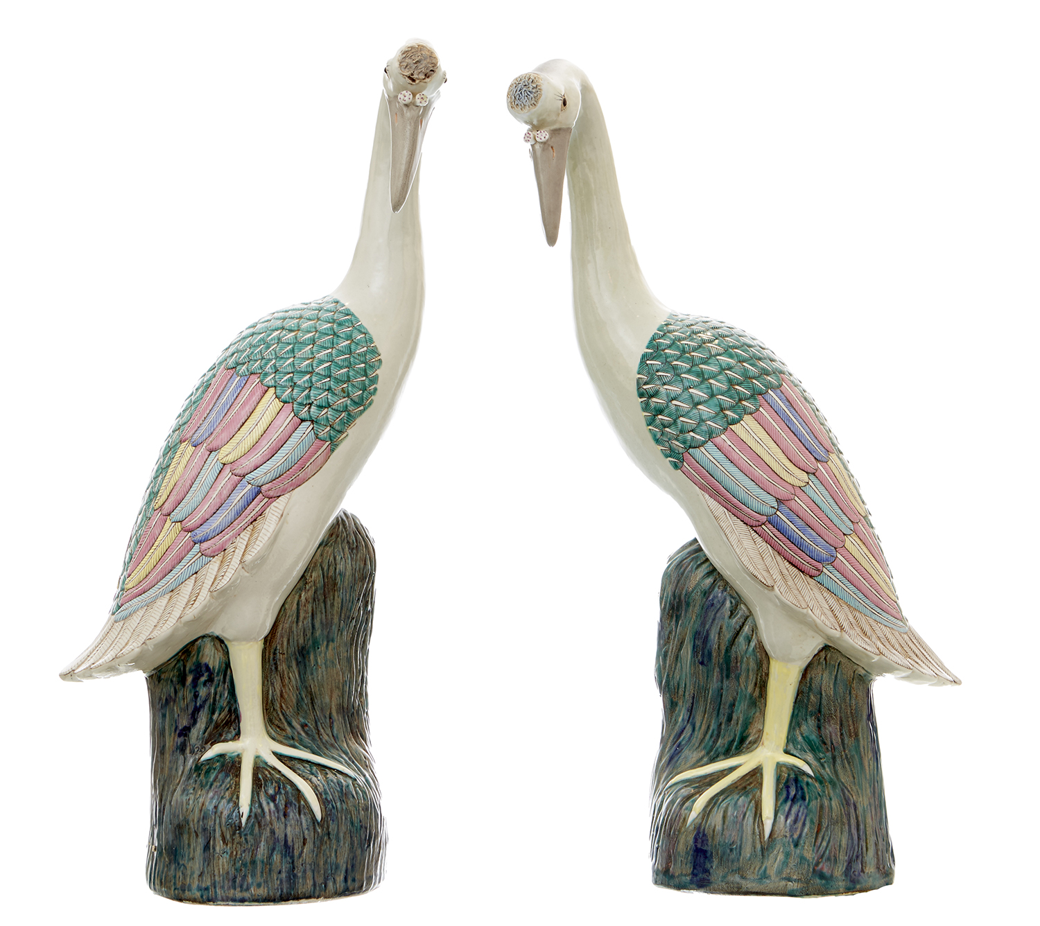 A PAIR OF CHINESE FAMILLE VERTE CRANES IN THE CHINESE EXPORT STYLE, 20TH CENTURY