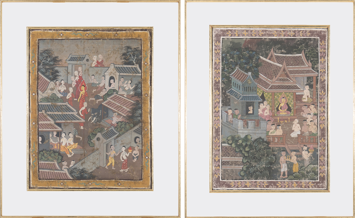 A PAIR OF SOUTH EAST ASIAN PAINTED SCENES