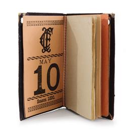 Covered in gilt tooled black leather binding, 7.7 x 5.5cm