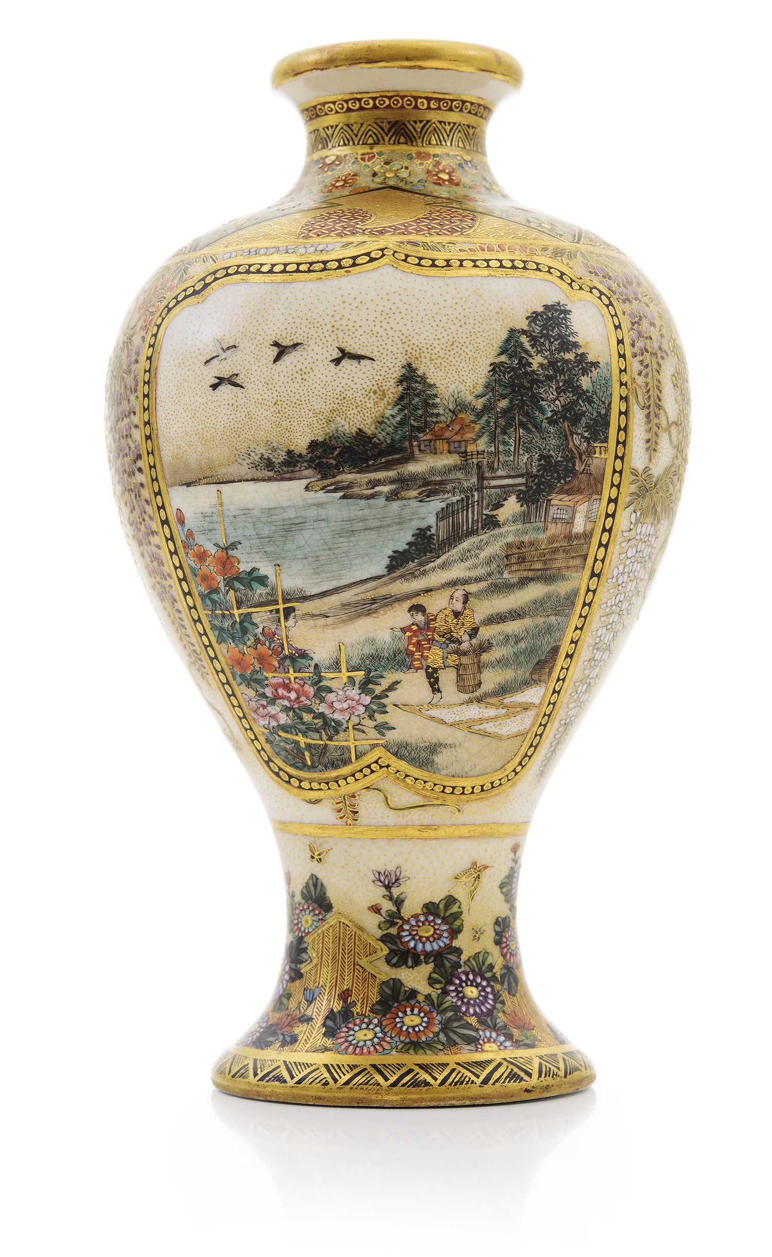 A SATSUMA VASE, WISTERIA DECORATION