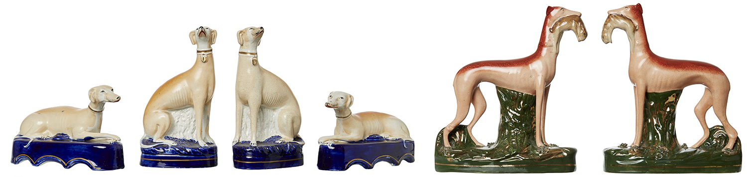 A COLLECTION OF STAFFORDSHIRE GREYHOUNDS, 19TH CENTURY AND LATER
