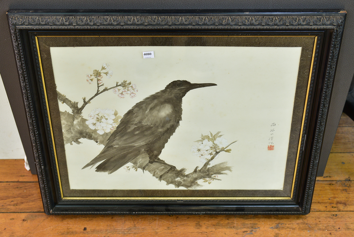 Of large and crow on a plum branch. Signed NANKOKU OSAWA SAKU