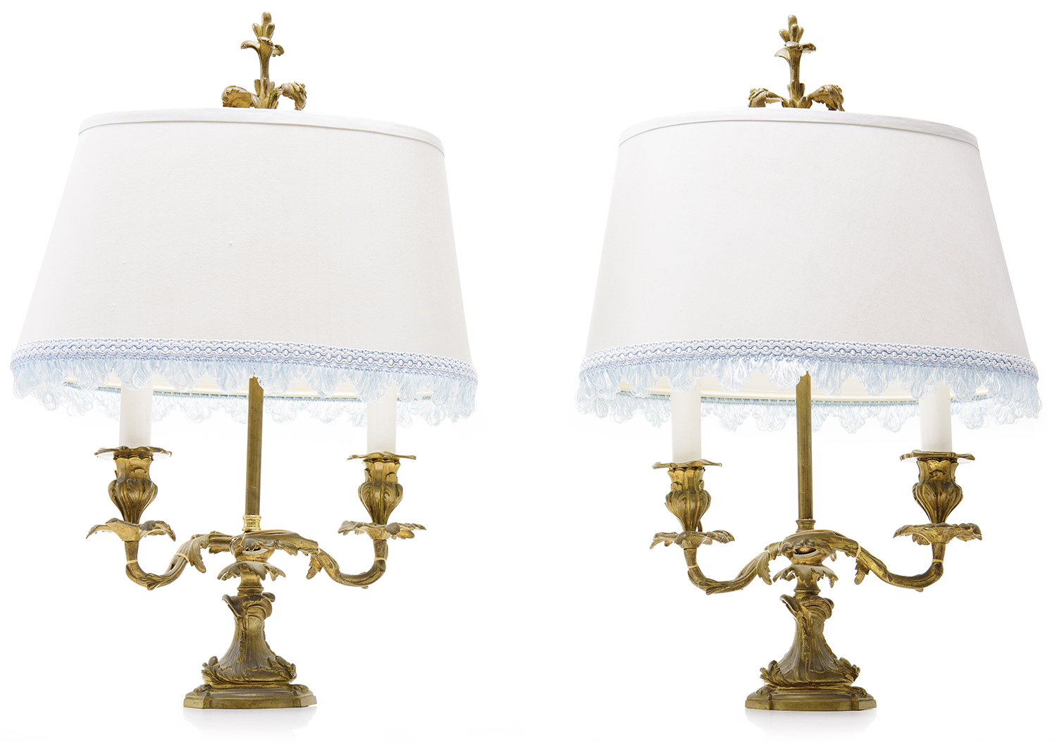 each with a cast brass base in the rococo style, approximately 55cm high