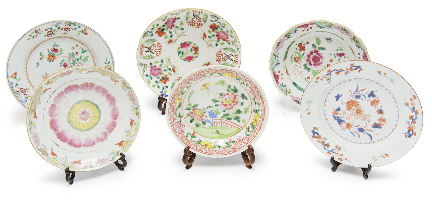 A COLLECTION OF SIX POLYCHROME PORCELAIN PLATES