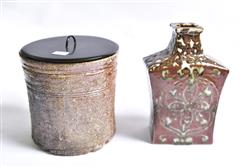Including a contemporary studio pottery Tsubo (Jar) attributed to Kawai Toru, 20th Century, together with a contemporary ceramic Mizuzashi (water container for tea ceremony) with lacquer lid, by Takahashi Rakusai III, Shigaraki Kiln. The jar 22cm high, the water container 18cm high (2).