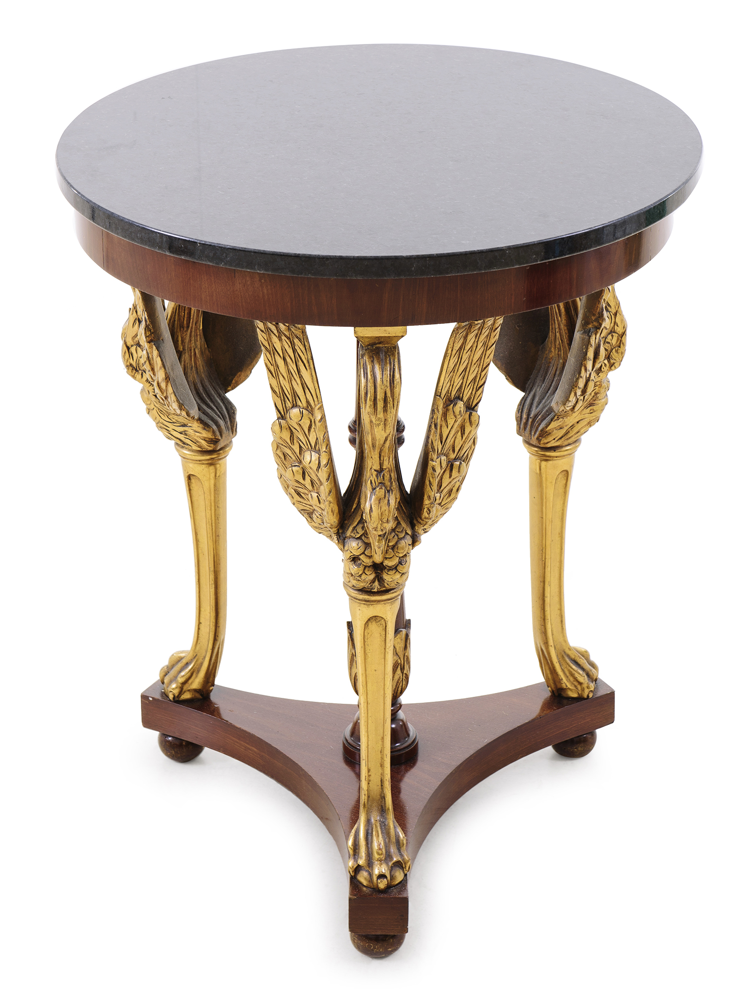 Raised on a tripod base with swan shaped legs, 70.5cm high, 58 cm diameter