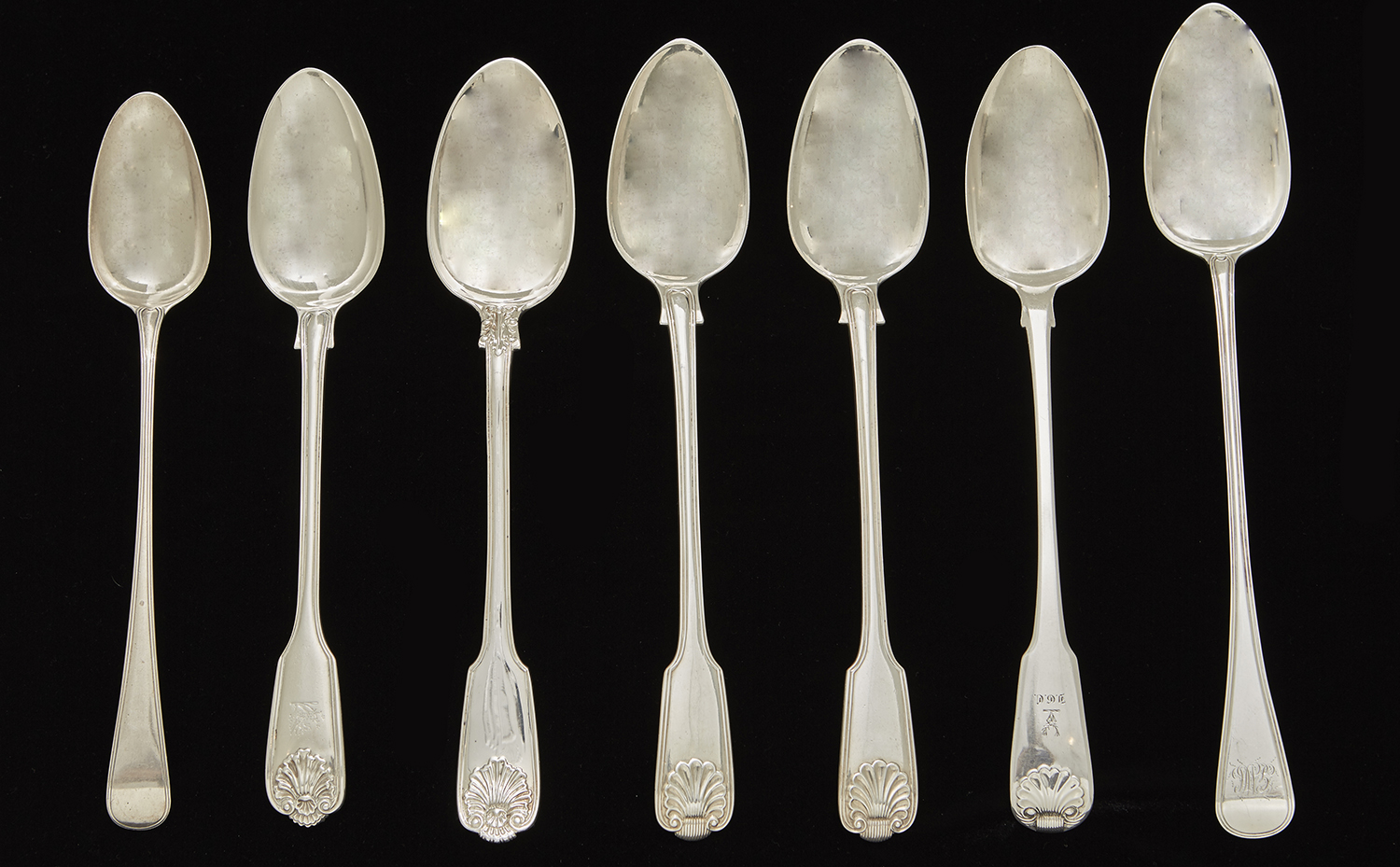 A FINE COLLECTION OF GEORGIAN AND LATER SILVER BASTING SPOONS