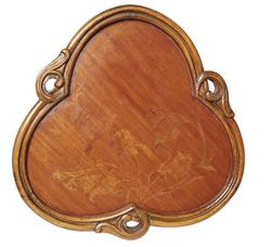 AN ART NOUVEAU FRUITWOOD MARQUETRY TWO-TIERED TABLE, IN THE MANNER OF CAMILLE GUATHIER, CIRCA 1900