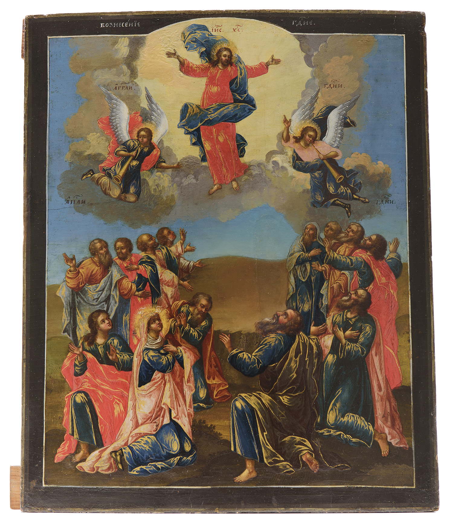 Depcicting Mary and the twelve apostles bearing witness to the Ascension of Christ, 43 x 35.5 x 3cm