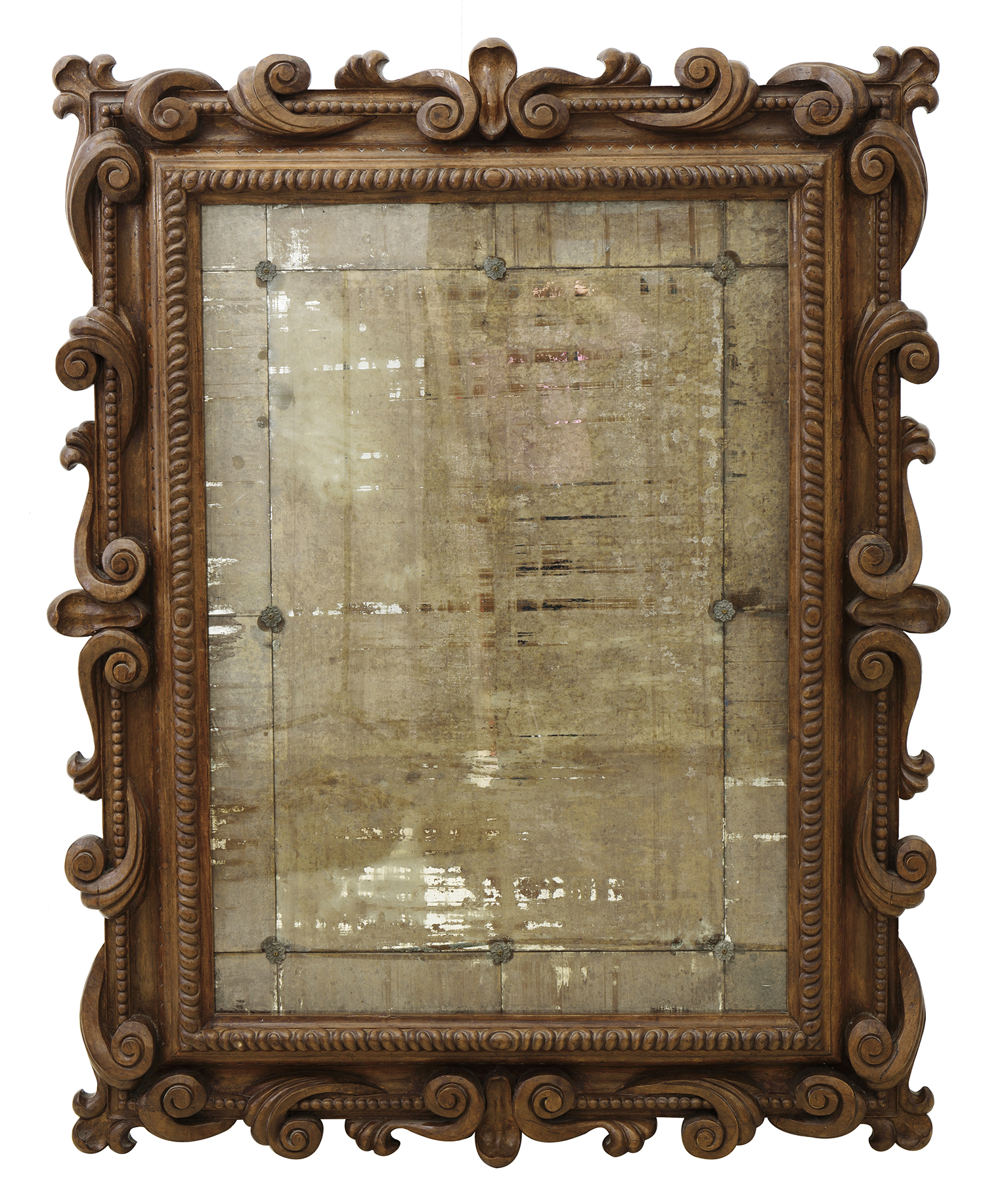 In the rococo style, the segmented rectangular plate with a boldly carved foliate surround, 188 x 147cm