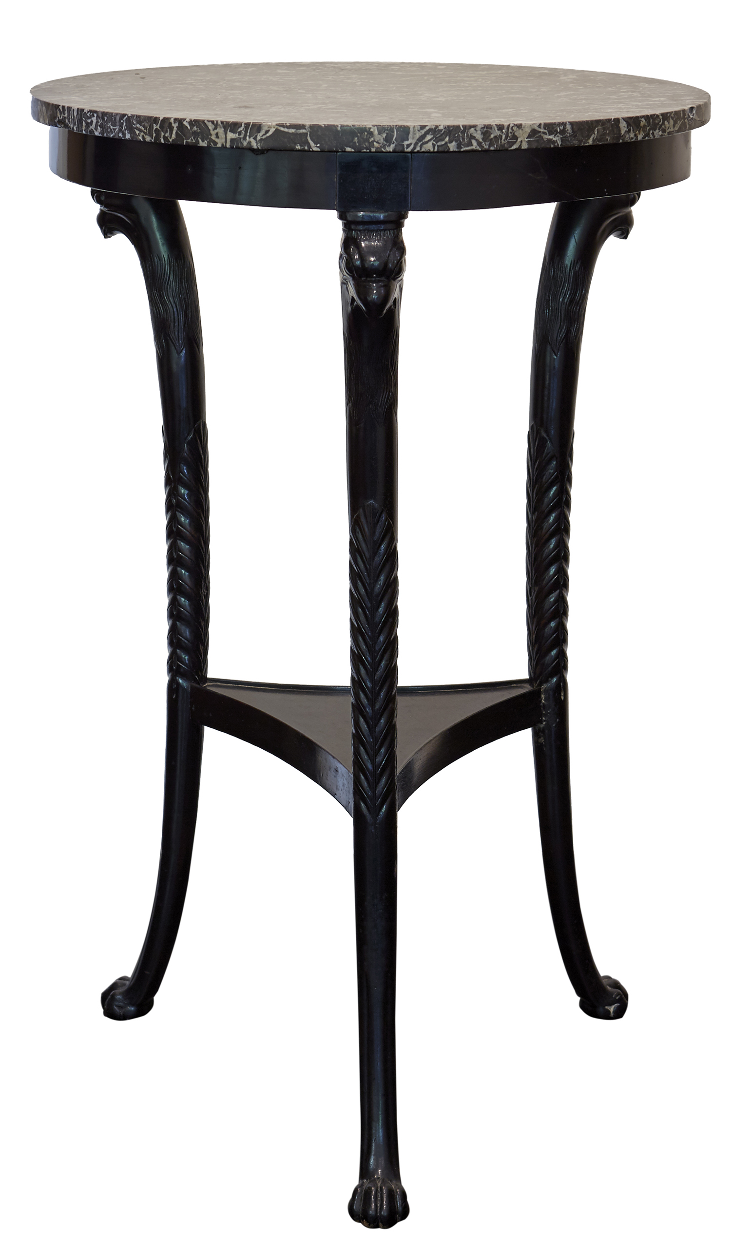 A FRENCH EMPIRE EBONIZED GUERIDON WITH MARBLE TOP, CIRCA 1820