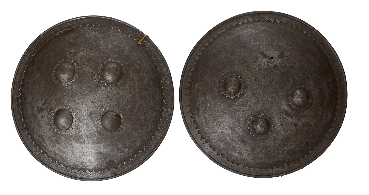 A PAIR OF INDO PERSIAN DAMASCENED SHIELDS, 19TH CENTURY