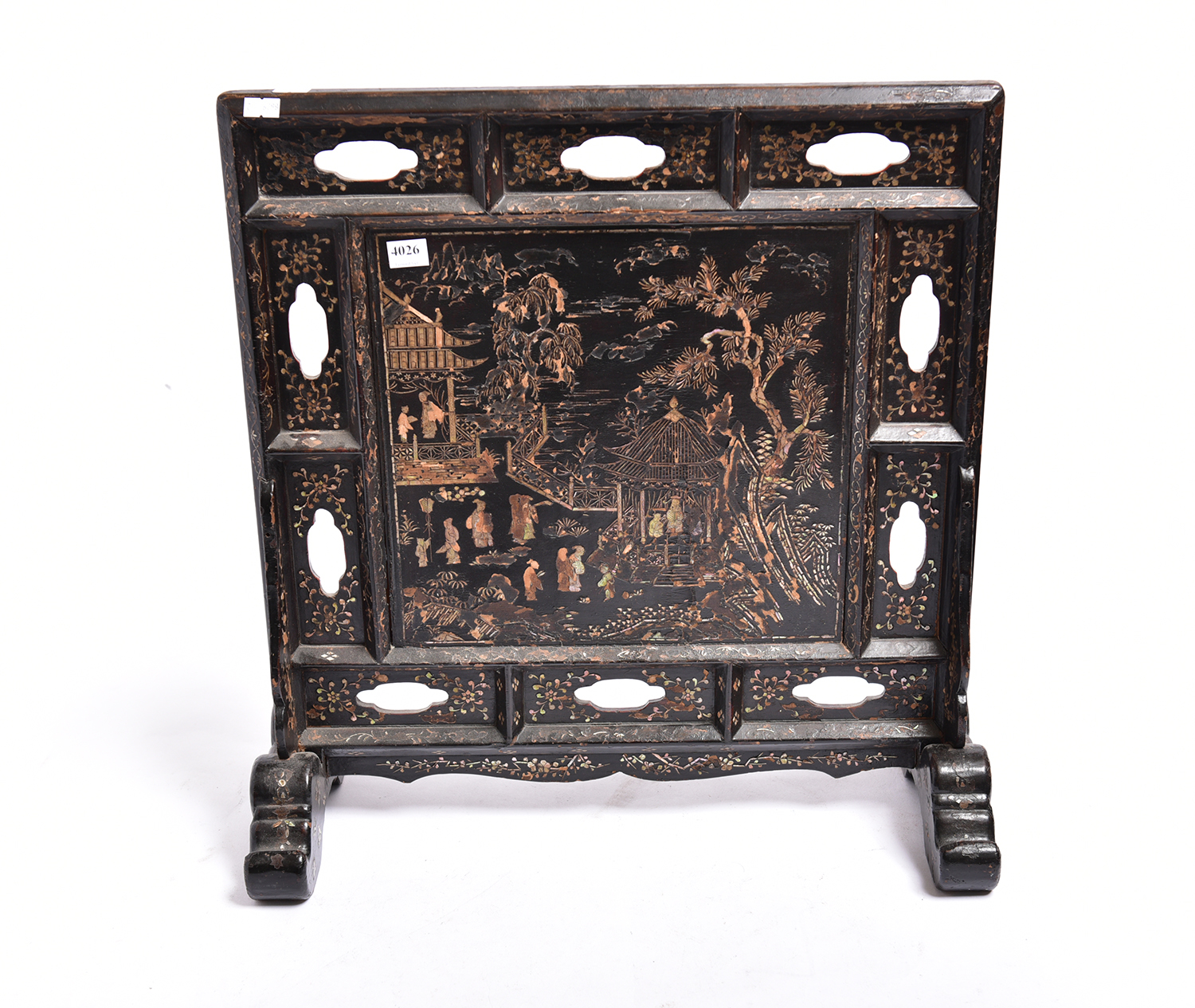 A CHINESE MOTHER OF PEARL INLAID TABLE SCREEN, LATE MING DYNASTY (1368-1644)