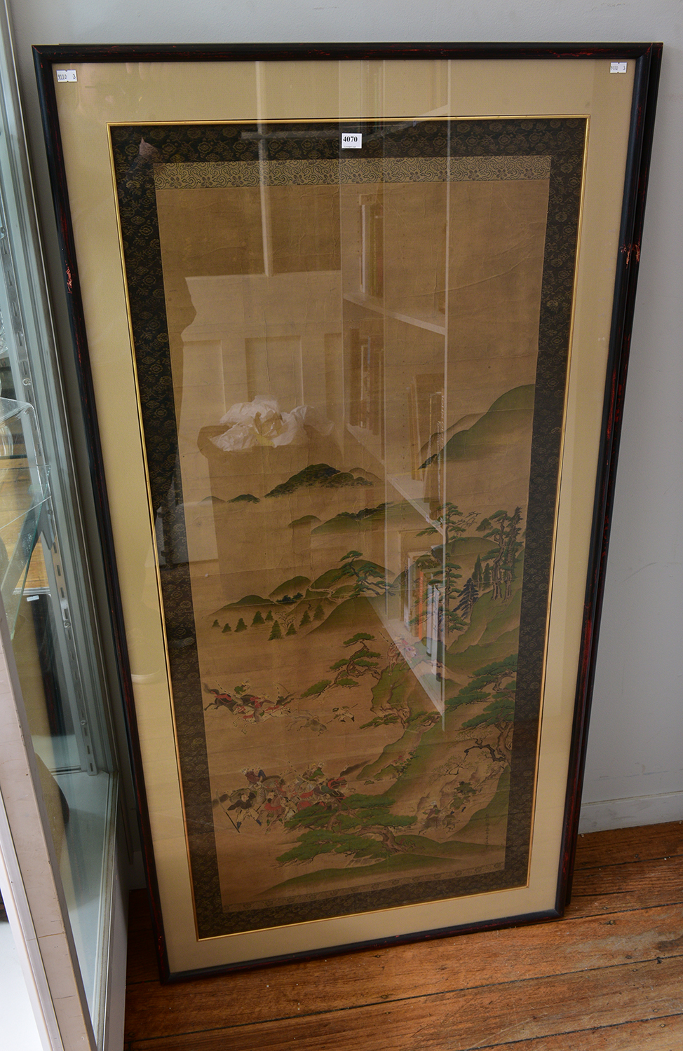 A PAIR OF JAPANESE FRAMED SCROLL PAINTINGS, COLOURS ON SILK, KANO TANSHIN (1653-1715),EDO PERIOD (1603-1868), 18TH/19TH CENTURY
