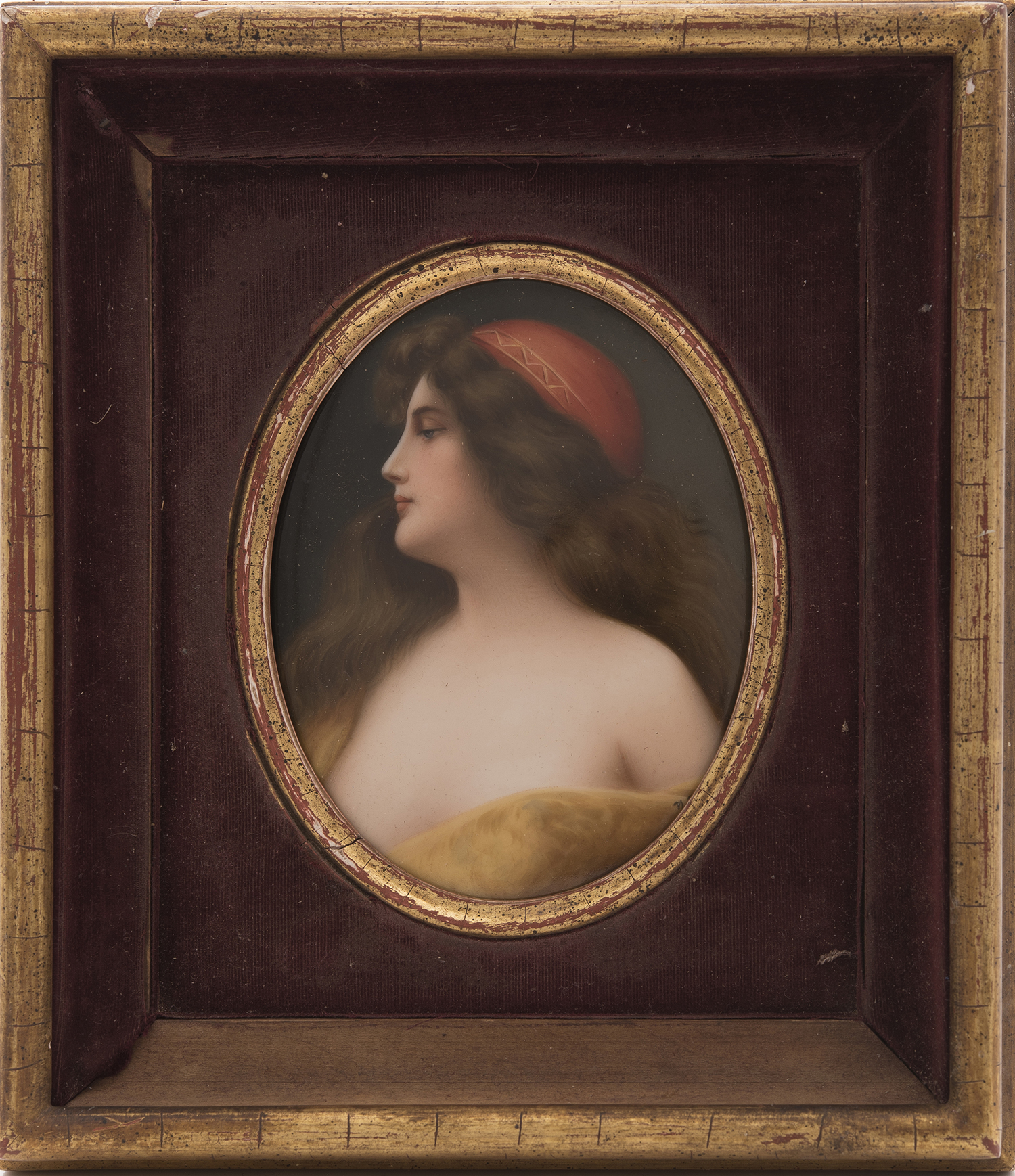 Circular, depicting a female beauty, 11.5 x 90.5cm (oval)