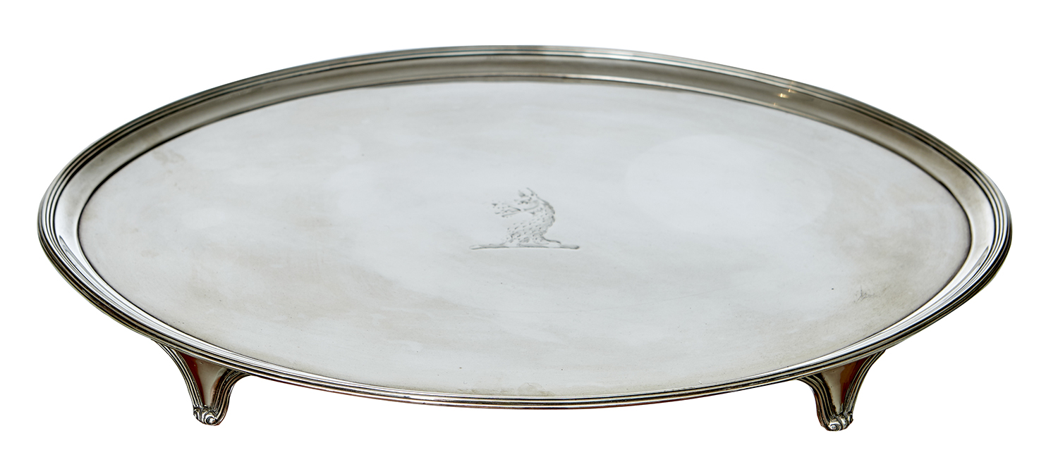 A GEORGE III STERLING SILVER OVAL SALVER BY JOHN CROUCH I & THOMAS HANNAM, LONDON 1794