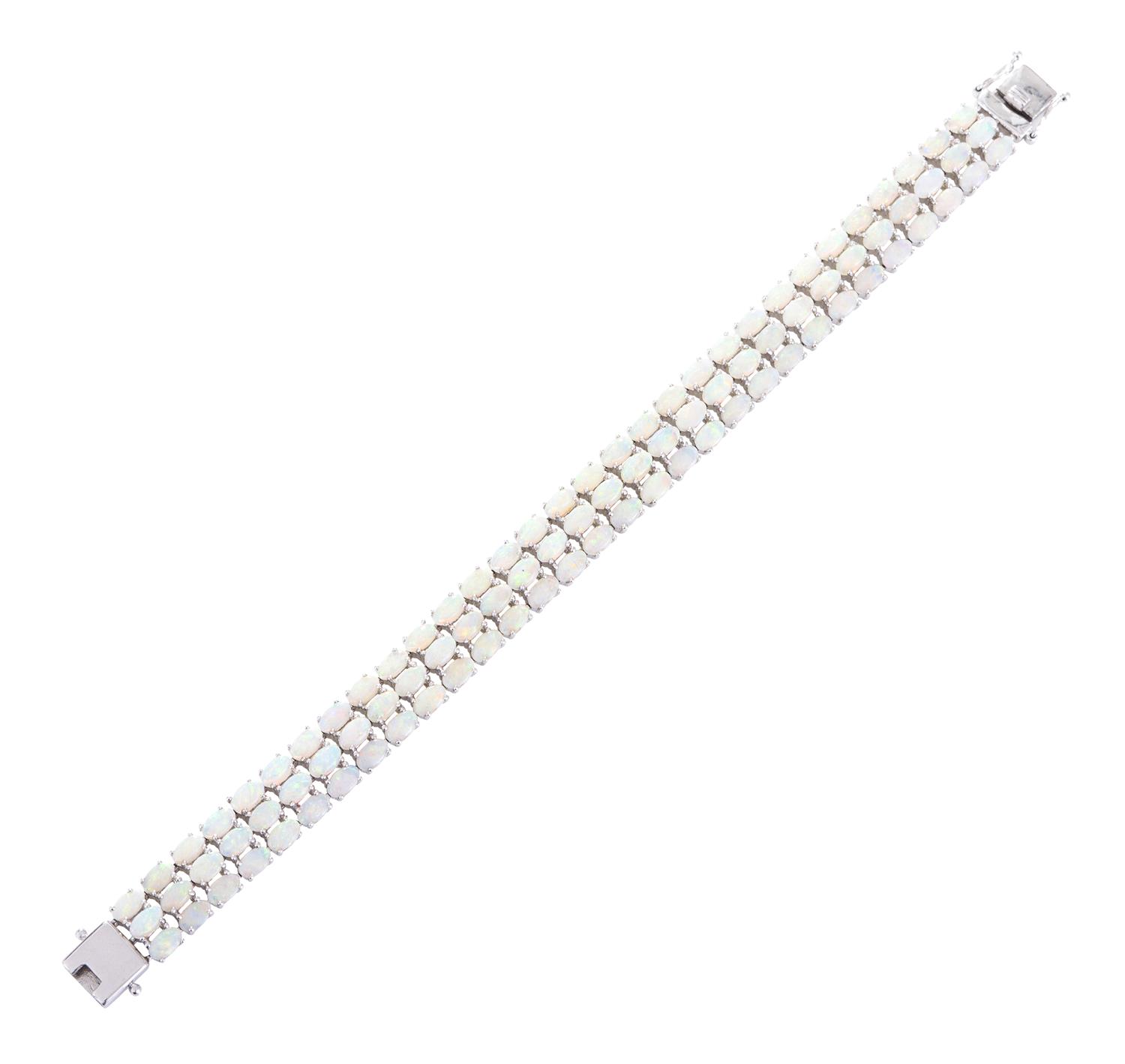Comprising ninety three oval opals cut en cabochon, mounted in 14ct white gold, total length 180mm.