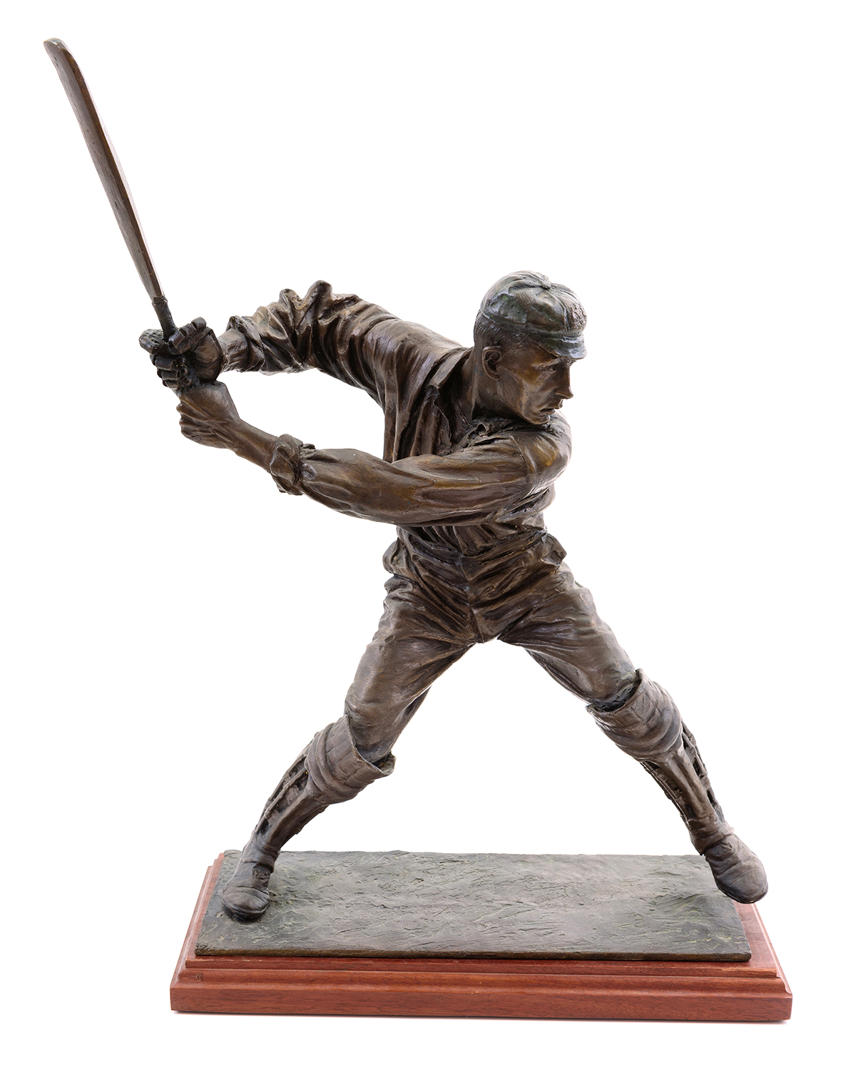 The tip of Victor's bat is 51cm tall, and the statue is 34cm long. Bronze is disconnected from base, but otherwise in very good condition.