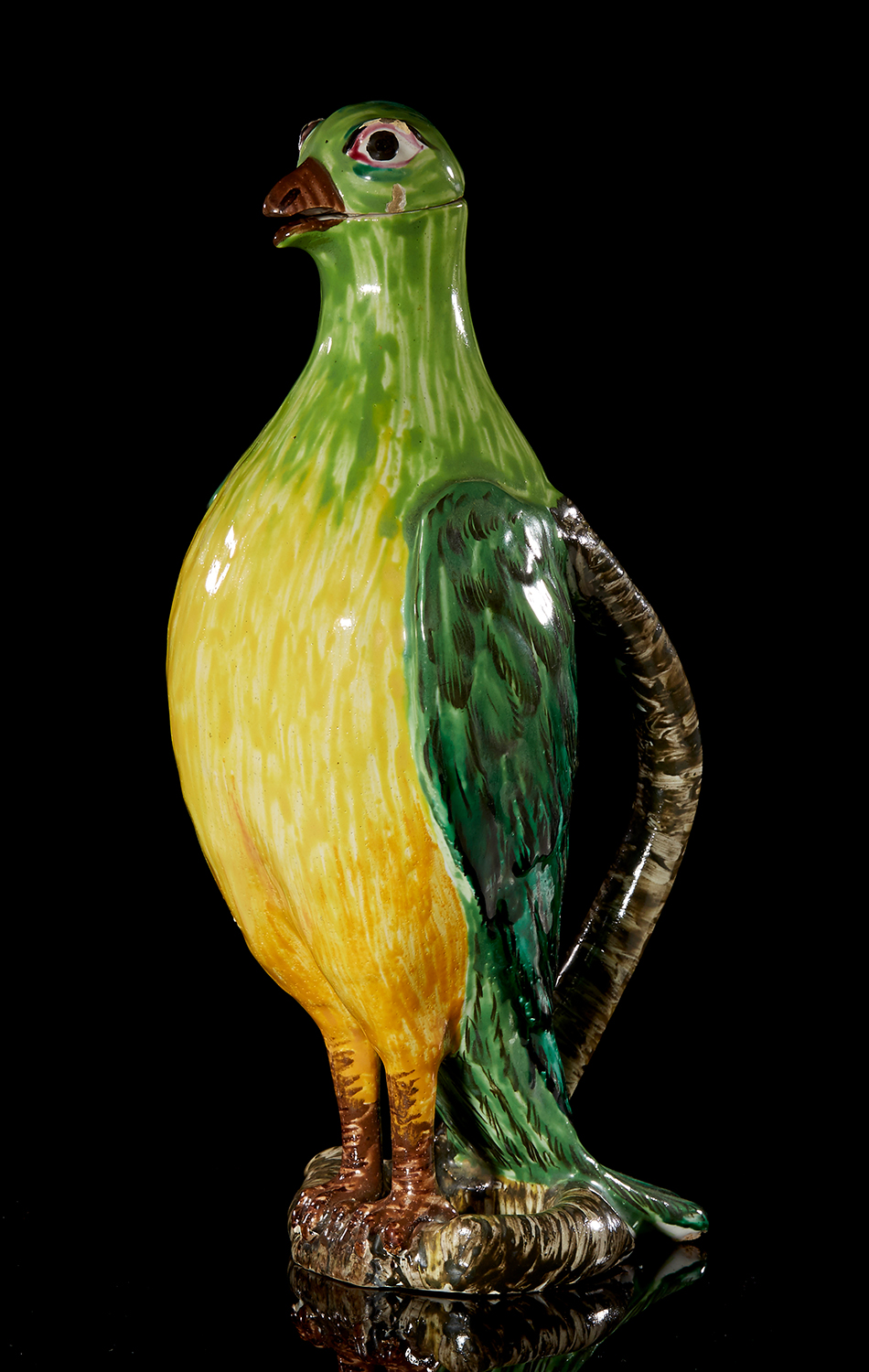 Boldly painted, the handle modeled as an entwined branch, 35cm high