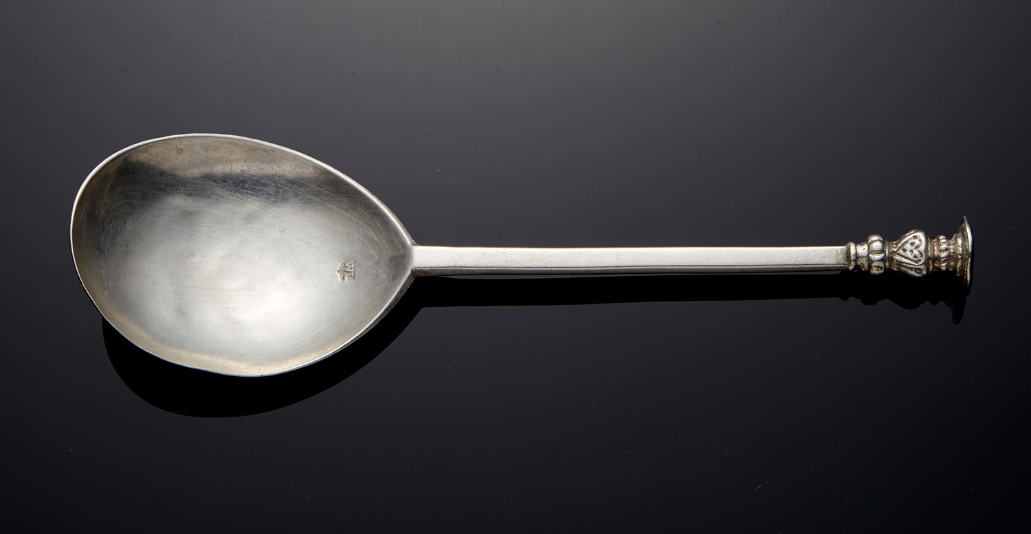 The large seal top engraved with initials MN IS, the large fig shaped bowl stamped with maker's mark WL then another three times on the stem, 53 grams, 17.8cm