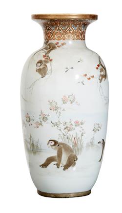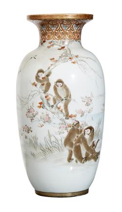 A JAPANESE SETO VASE, MONKEY THEME, MEIJI PERIOD, 20TH CENTURY, SIGNED
