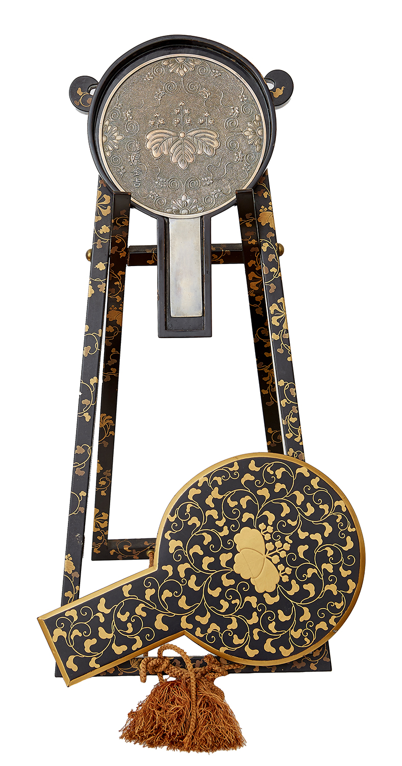 Mirrors used in the Edo Period, and earlier were made from bronze, nickel, and iron with the surface highly polished. The reverse would often feature a intricately carved design. It is very rare for early examples to be extant with accompanying furnishings.