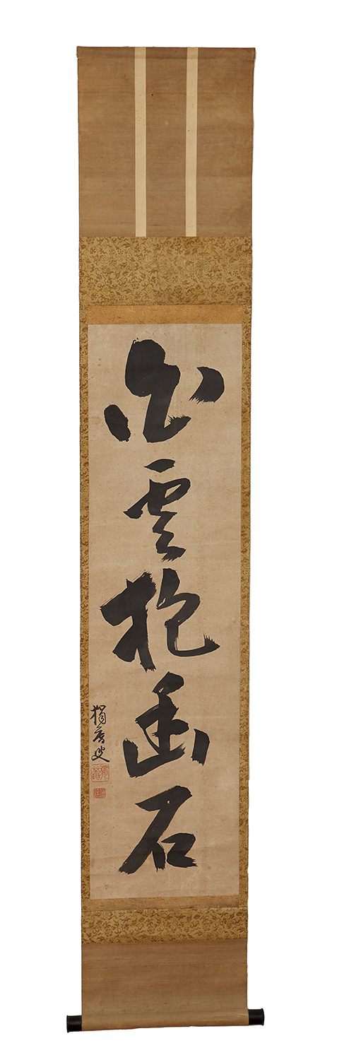Kakejiku (vertical hanging scroll), ink on paper featuring a passage of a poem by eighth century Chan Buddhist recluse Hanshan, 'White clouds embracing the hidden stones', the artwork excluding mount 94 x 24cm