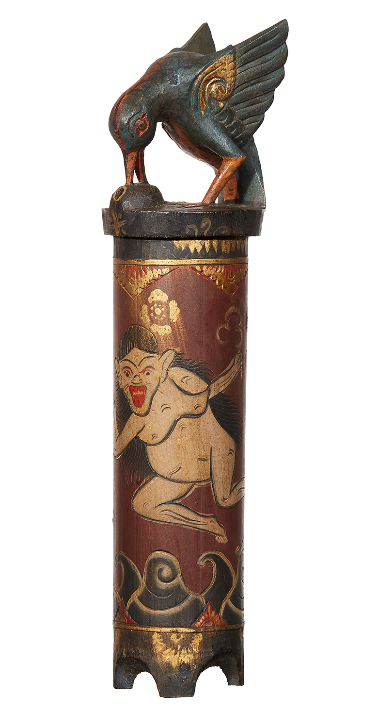 A BALINESE CARVED BAMBOO CEREMONIAL CONTAINER